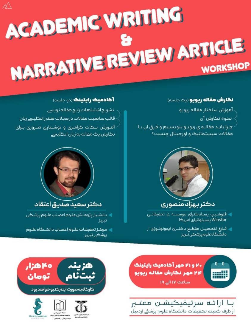 ۲۰ و ۲۱ مهر : آکادمیک رایتنگ / ۲۴ مهر : نگارش مقاله نریتیو ریویو