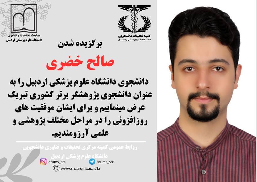 انتخاب جناب آقای صالح خضری دانشجوی دانشگاه علوم پزشکی اردبیل به عنوان دانشجوی پژوهشگر برتر کشوری