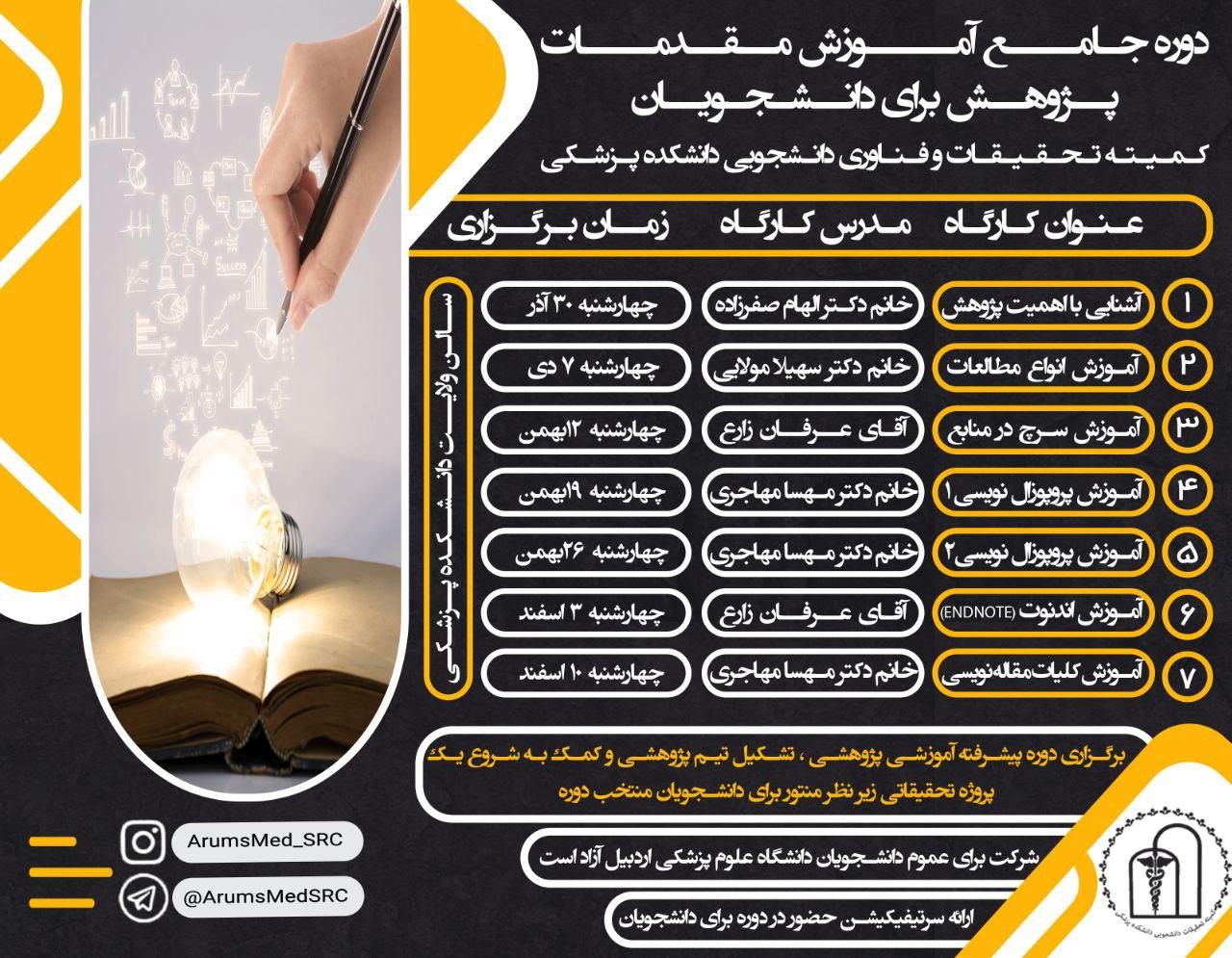 کمیته تحقیقات و فناوری دانشکده پزشکی دانشگاه علوم پزشکی اردبیل برگزار می کند :