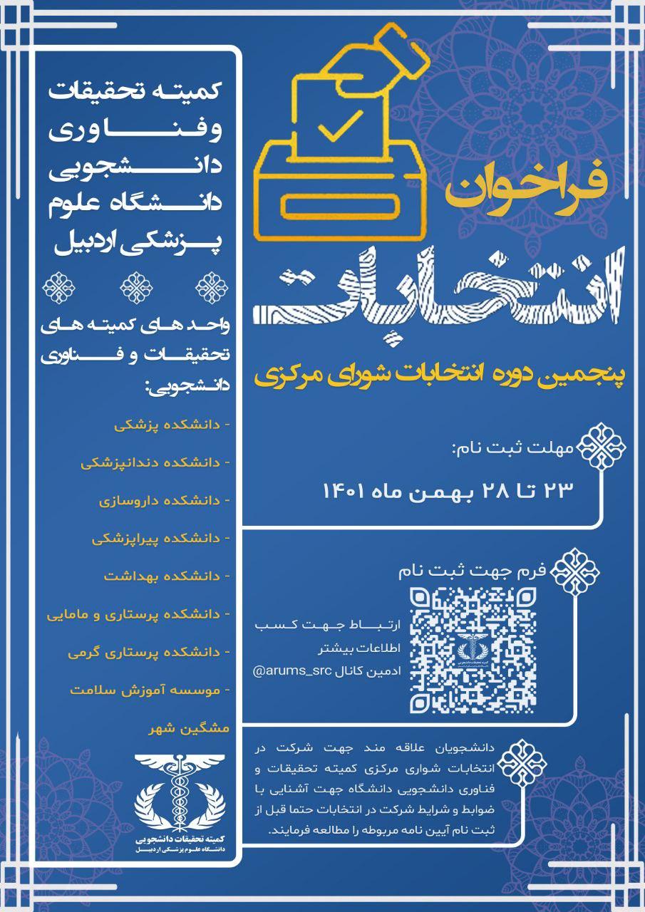 فراخوان ثبت نام پنجمین دوره انتخابات شورای مرکزی کمیته تحقیقات و فناوری دانشجویی دانشگاه علوم پزشکی اردبیل