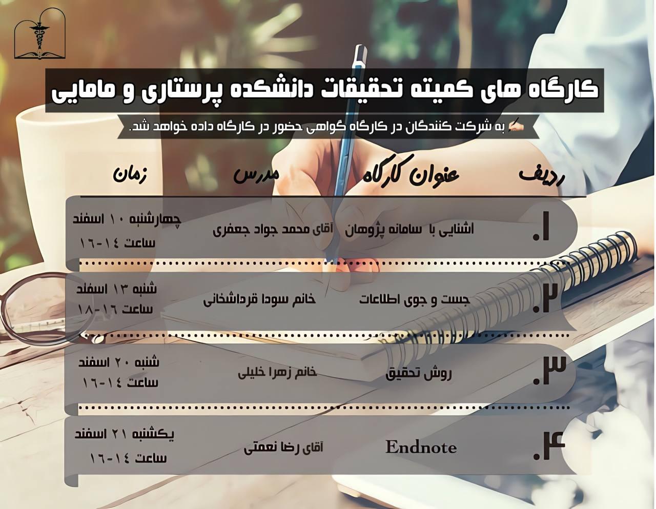 کمیته تحقیقات و فناوری دانشکده پرستاری و مامایی دانشگاه علوم پزشکی اردبیل برگزار می کند :