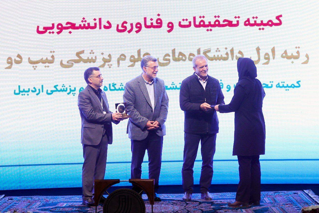 ۴۰۰ متقاضی در این جشنواره شرکت کرده بودند و از بین دانشگاههای علوم پزشکی، مجلات علمی، مراکز تحقیقاتی، مراکز رشد، شرکتهای دانش بنیان و موسسات غیردولتی حامی پژوهش نیز ۲۵ گزینه به عنوان برگزیده انتخاب شده بودند که دانشگاه علوم پزشکی اردبیل، رتبه اول دانشگاههای تیپ دو علوم پزشکی کشور را کسب نمود و تندیس و لوح سپاس رئیس جمهور به کمیته تحقیقات و فناوری دانشجویی دانشگاه علوم پزشکی اردبیل تقدیم شد.